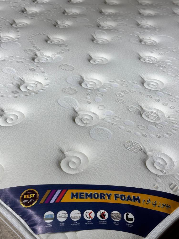 • ميموري فوم ممزوج بالجل: يساهم في تعزيز الراحة مع توزيع أفضل للحرارة، مما يوفر بيئة نوم مريحة وجافة.